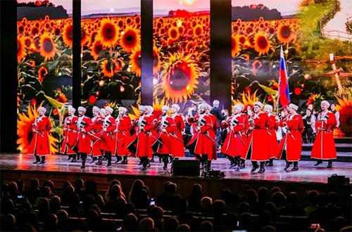 В фееричном концерте приняли участие Государственный академический русский народный хор имени М. Е. Пятницкого, Государственный академический орденов Дружбы народов и святого благоверного великого князя Димитрия Донского 1-й степени Кубанский казачий хор, артисты Кремлёвского балета, вокальная группа «VIVA», Сергей Войтенко и группа «Баян Микс», театр песни «Талисман», хореографический ансамбль «Аквамарин», фолк-группа CLEVER FOLK и русская компания современного танца Александра Могилева «Это».