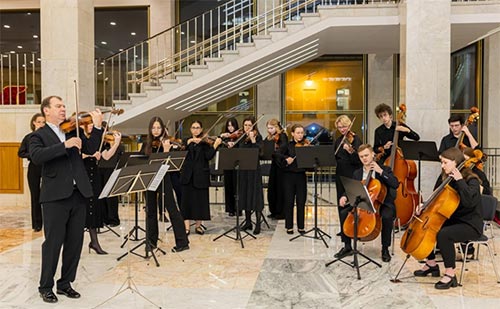 Заключительной частью праздничного вечера стала песня «Счастья тебе, земля моя», исполненная заслуженным артистом России Аскаром Абдразаковым, певицей Елизаветой Долженковой, детским театром песни «Талисман» и студенческими коллективами академии.